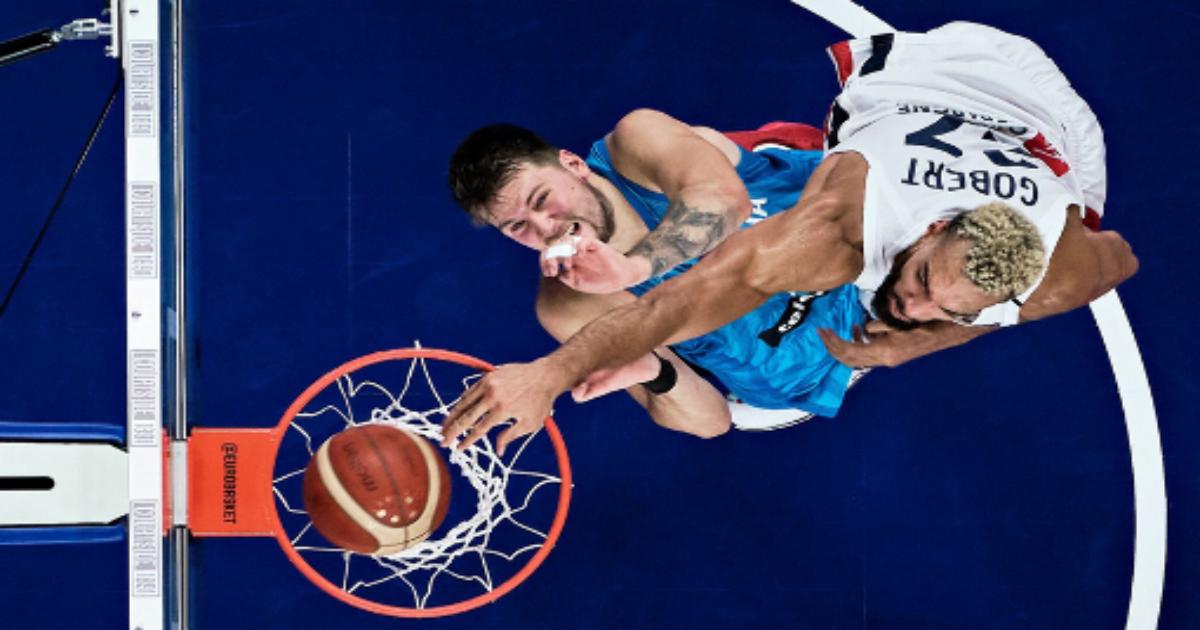 Твиттер-аккаунт NBA France опубликовал снимок данка центрового сборной Франции Руди Гобера через словенского разыгрывающего Луку Дончича, сделанный с необычного ракурса.