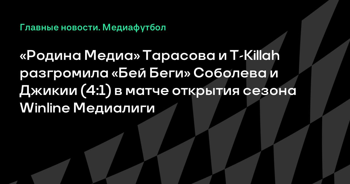 «Родина Медиа» Тарасова и T-Killah разгромила «Бей Беги» Соболева и Джикии (4:1) в матче открытия сезона Winline Медиалиги