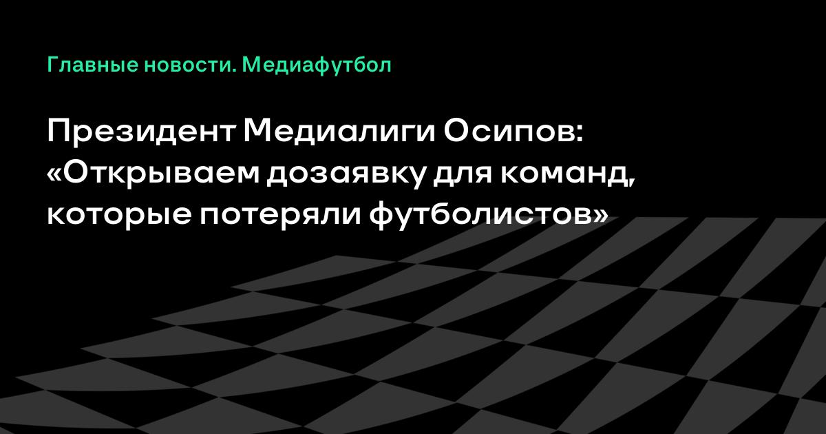 Президент Медиалиги Осипов: «Открываем дозаявку для команд, которые потеряли футболистов»