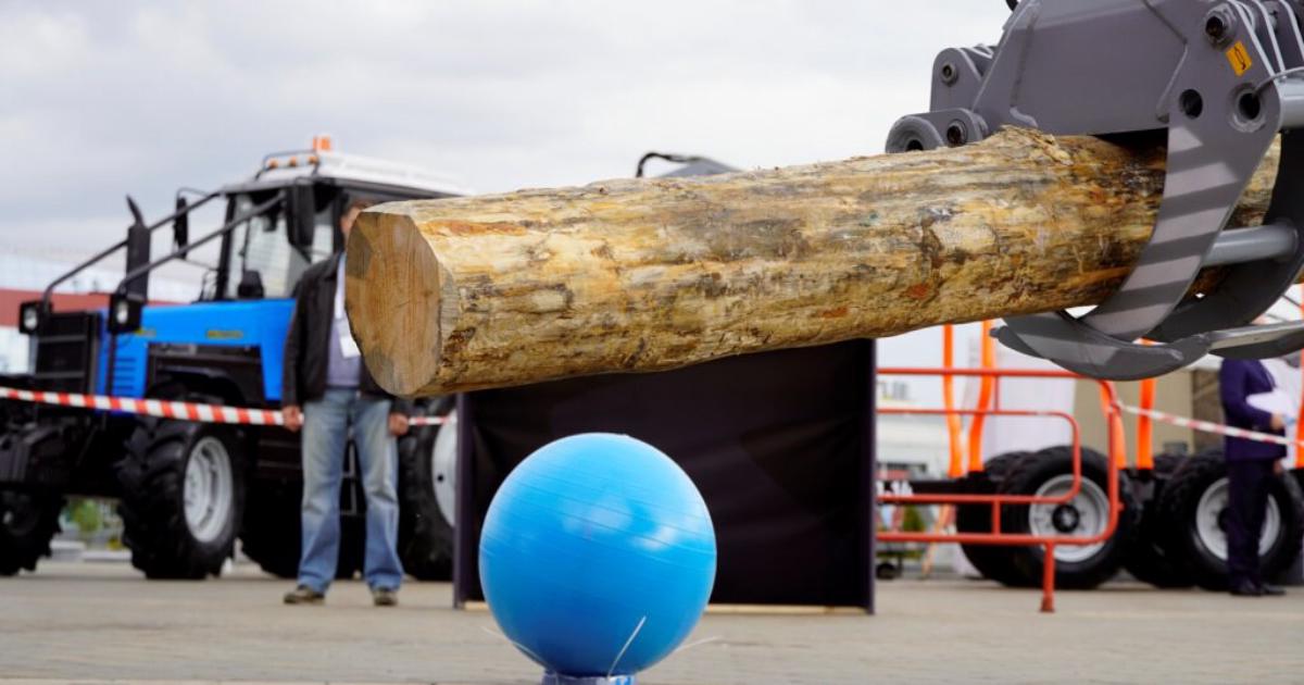 В Беларуси прошел шоу-конкурс «Лесной хоккей». Водителям тракторов нужно было бревном забить мяч в ворота