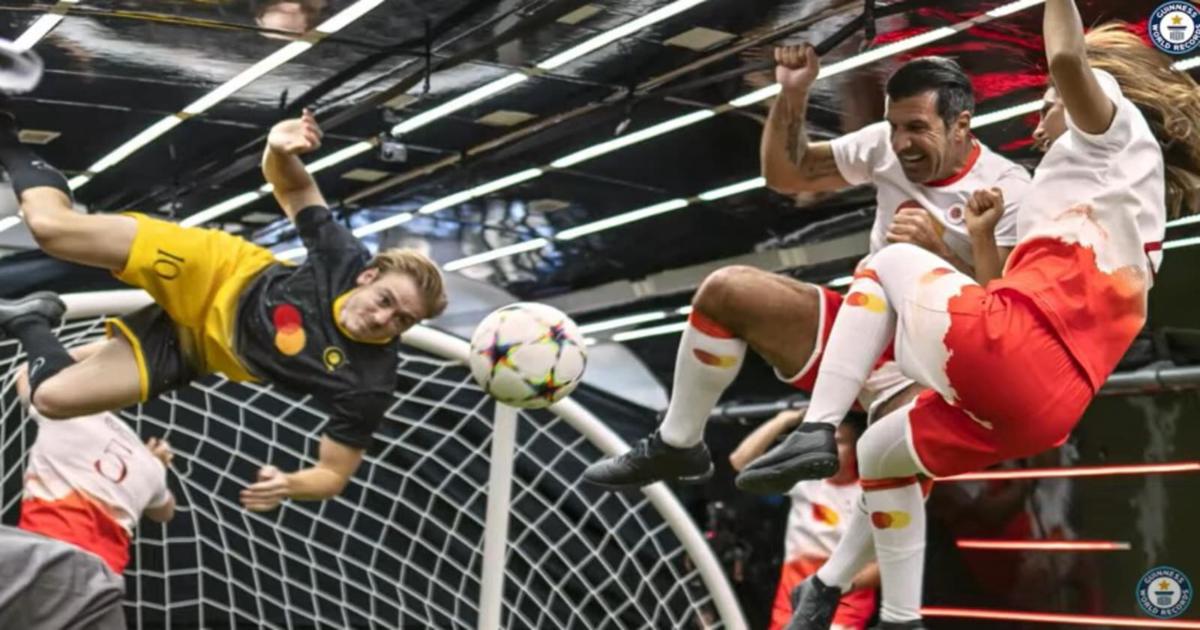 Бывший игрок «Барселоны», «Реала» и сборной Португалии принял участие в игре, которая прошла на борту специально сконструированного самолета. Фигу и семь других игроков поднялись в атмосферу для участия в матче «четыре на четыре».