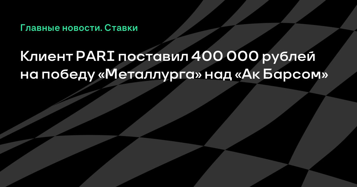 Клиент PARI поставил 400 000 рублей на победу «Металлурга» над «Ак Барсом»