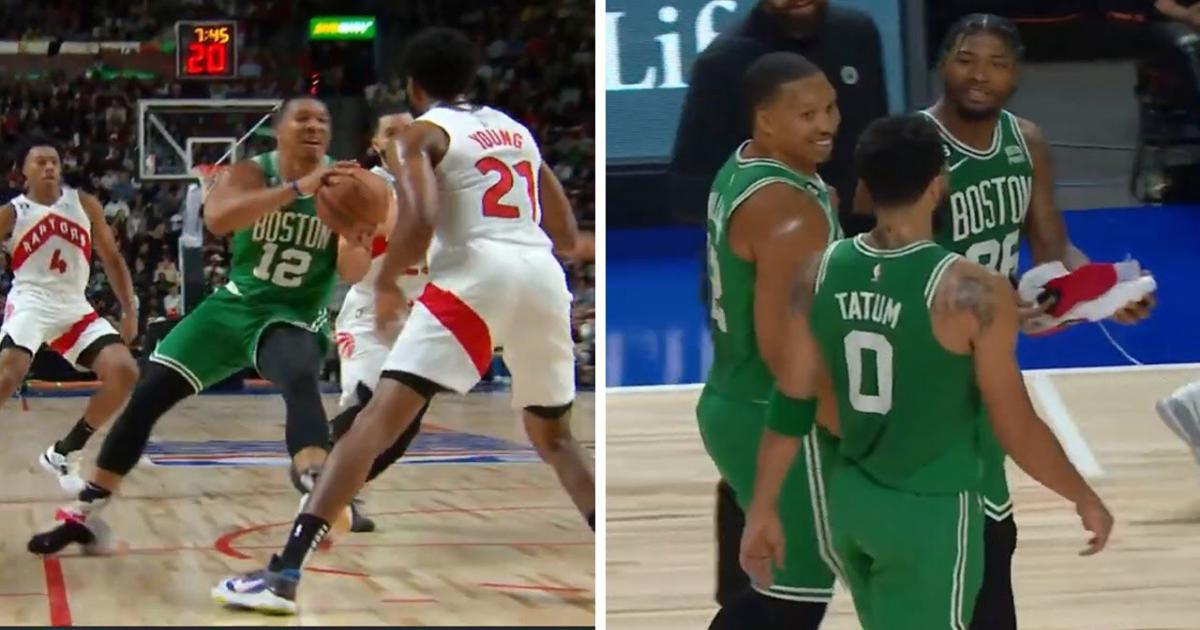 У форварда «Селтикс» Гранта Уильямса порвалась кроссовка во время предсезонного матча с «Рэпторс» (134:137 ОТ).