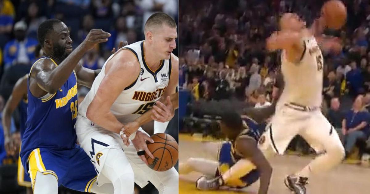 Форвард «Голден Стэйт» Дрэймонд Грин приземлился на ногу центрового «Денвера» Николы Йокича.