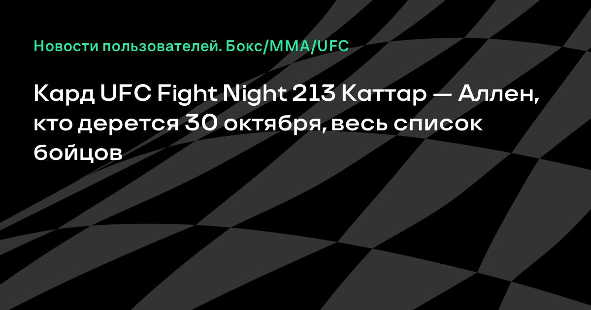 Кард UFC Fight Night 213 Каттар — Аллен, кто дерется 30 октября, весь список бойцов