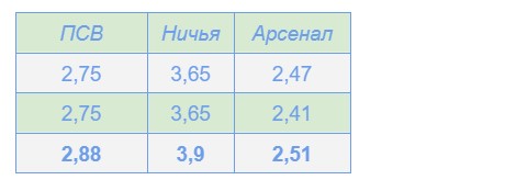 Коэффициенты матча ПСВ – Арсенал и прогноз на исход встречи
