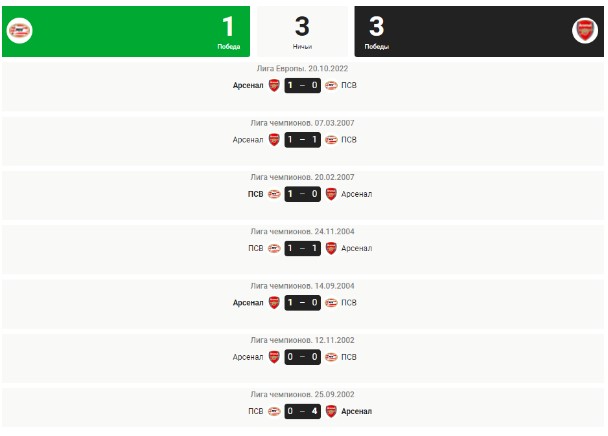 Что касается очных встреч команд, то всего они играли семь раз. Арсенал трижды выигрывал, и три раза сыграл вничью Приводим результаты личных встреч команд: