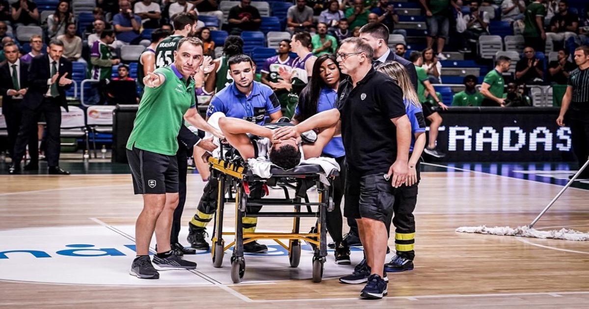 В середине первой четверти 25-летний американец неудачно приземлился, борясь за подбор, и получил перелом лодыжки. Игрока увезли с площадки на носилках.