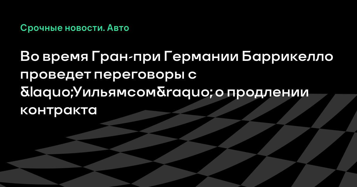 Пилот «Уильямса» Рубенс Баррикелло рассказал, что в предстоящий гоночный уик-энд в Германии он вместе с руководителем британской конюшни Адамом Парром проведет переговоры о продлении контракта на следующий сезон. При этом Баррикелло отметил, что он не спешит с заключением сделки.