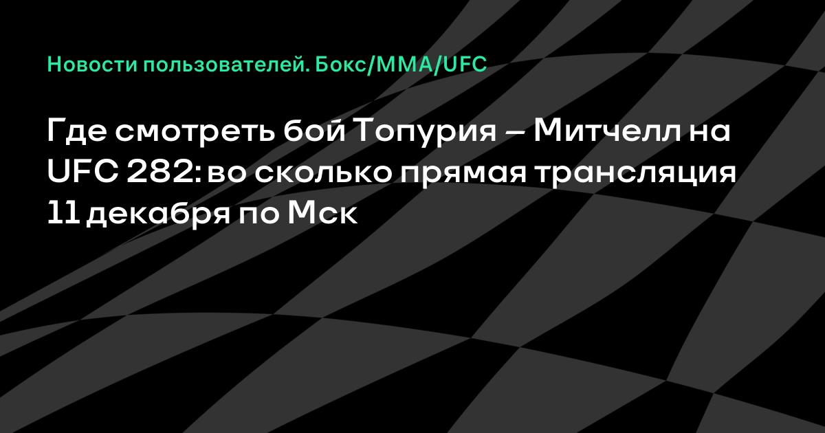 Где смотреть бой Топурия – Митчелл на UFC 282: во сколько прямая трансляция 11 декабря по Мск