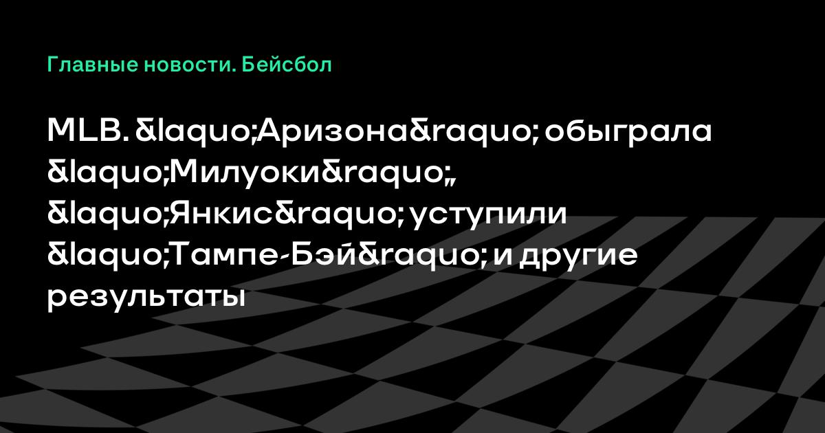 MLB. «Аризона» обыграла «Милуоки», «Янкис» уступили «Тампе-Бэй» и другие результаты