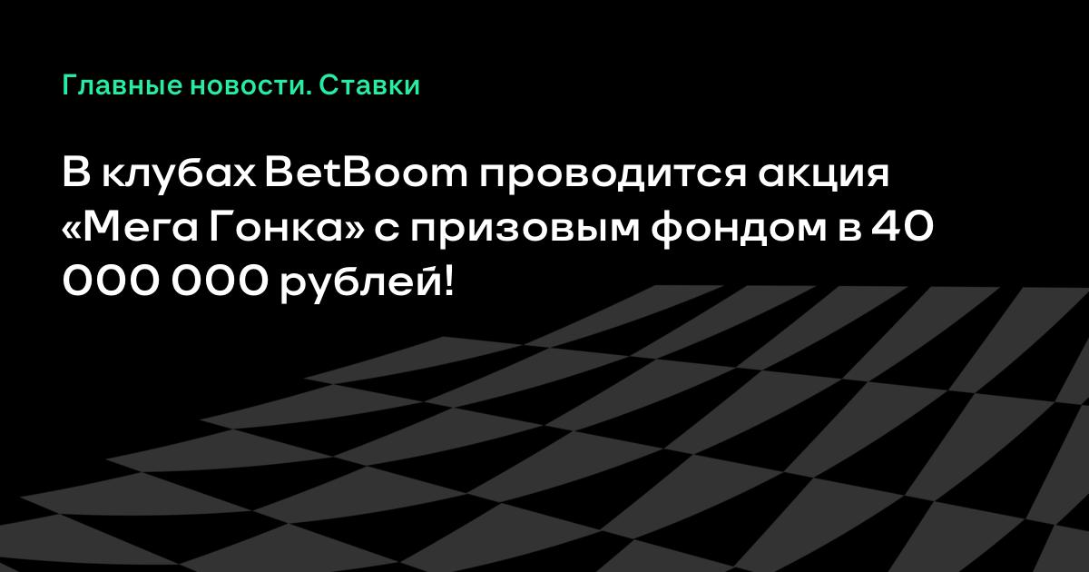 В клубах BetBoom проводится акция «Мега Гонка» с призовым фондом в 40 000 000 рублей!