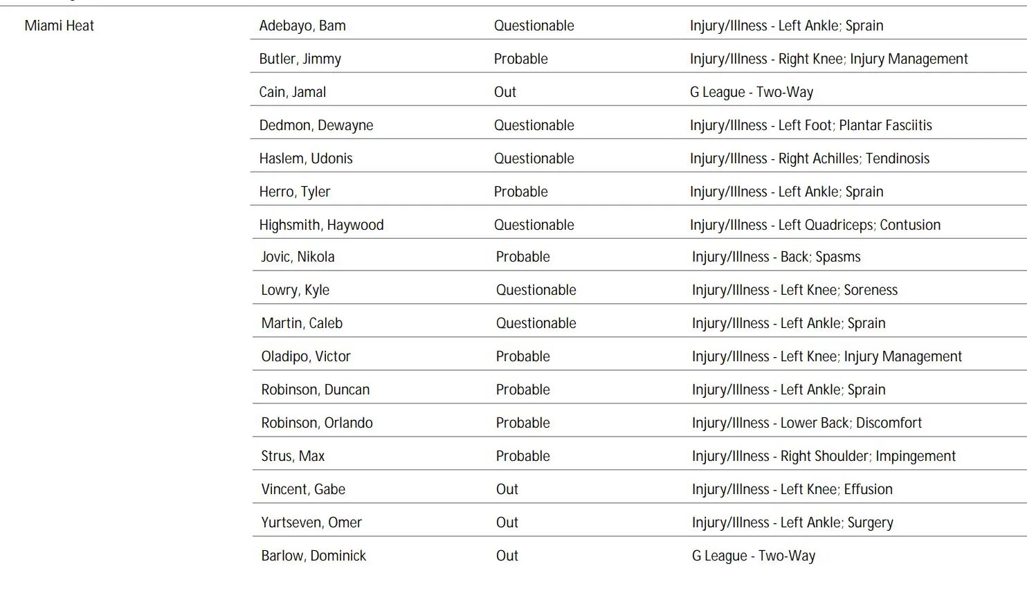 «Майами» поместил всех 17 игроков в список травмированных перед матчем со «Сперс»