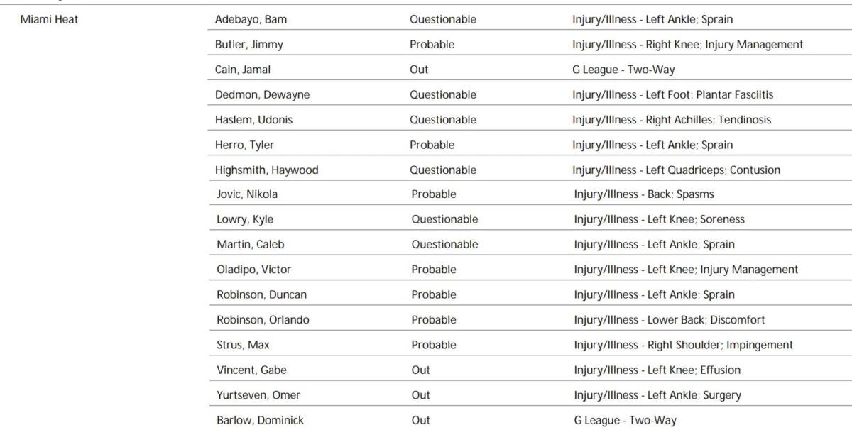В этом сезоне «Хит» больше других команд пострадали от повреждений игроков. В матче со «Сперс» точно не примет участие защитник Гэйб Винсент.