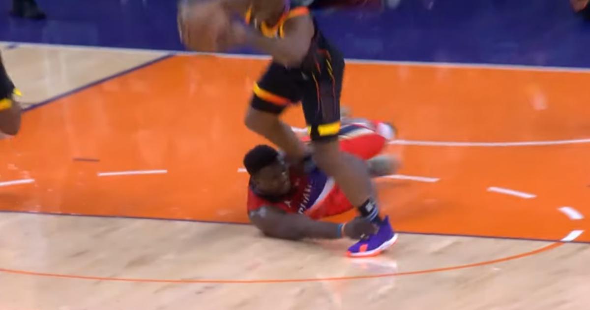 Форвард «Нового Орлеана» Зайон Уильямсон во время матча против «Финикса» повалил разыгрывающего соперника Криса Пола на паркет грубым приемом.