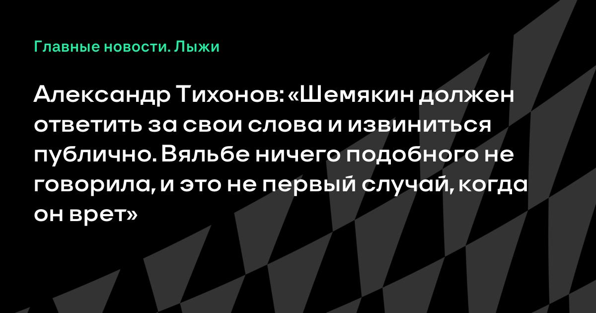 Александр Тихонов: «Шемякин должен ответить за свои слова и извиниться публично. Вяльбе ничего подобного не говорила, и это не первый случай, когда он врет»