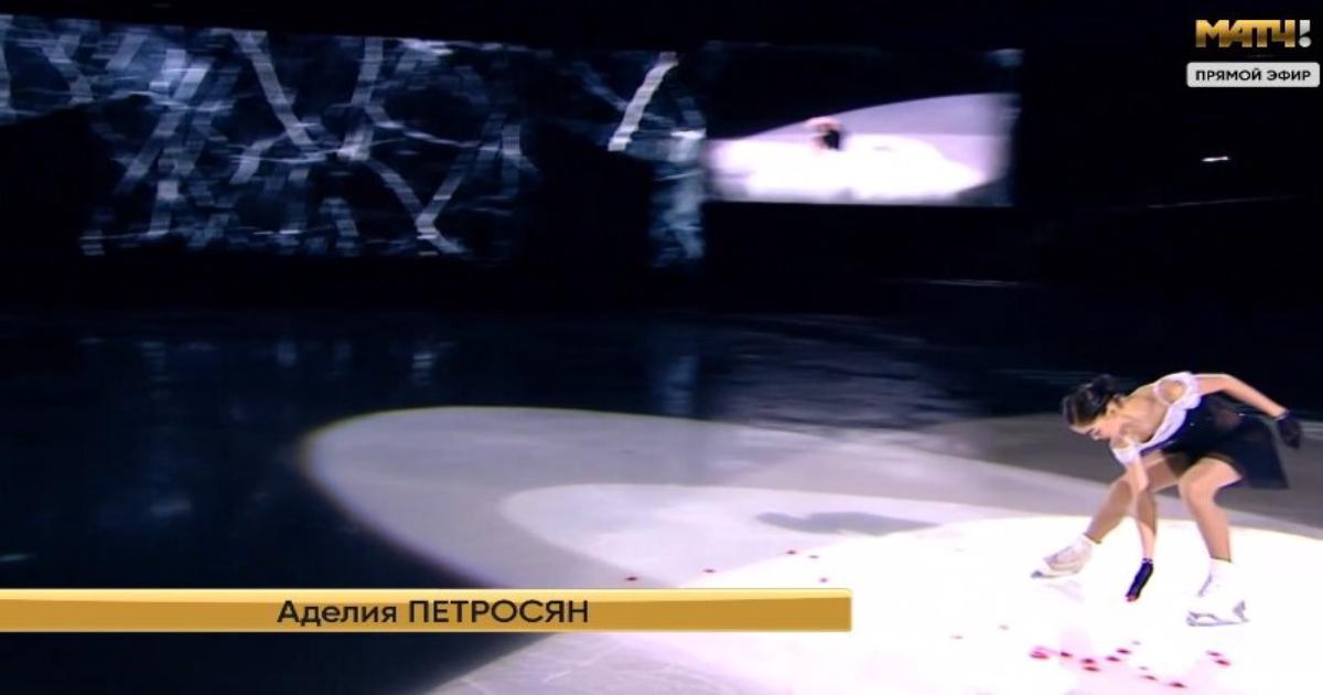 Петросян октрывала второе отделение после антракта – к моменту ее выхода лед так и не очистили полностью от лепестков.