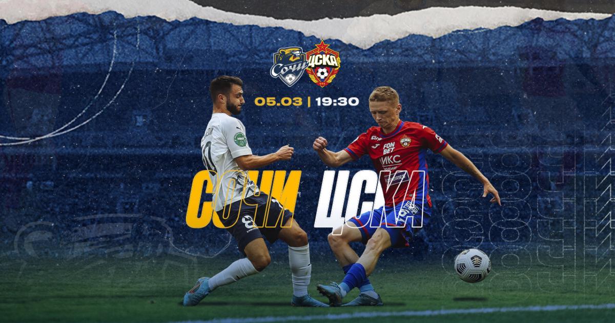 В 18 туре весенней части РПЛ «Сочи» принимает дома ЦСКА. Матчи состоится в воскресенье, 5 марта, в 19:30 на стадионе «Фишт».