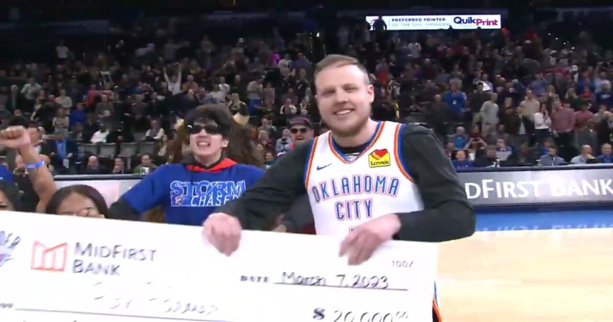 Болельщик «Оклахомы» получил приз в 20 000 долларов, забросив мяч с центра площадки.