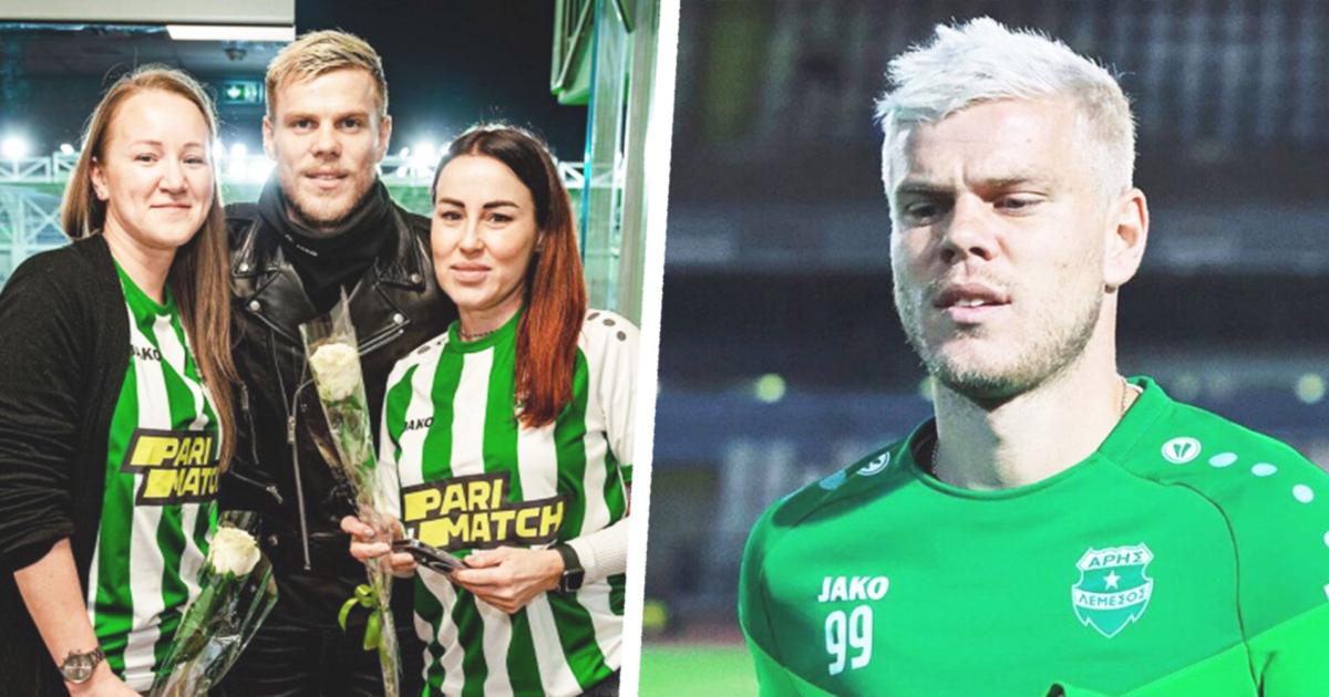 Российский форвард, пропускавший игру, пришел с цветами на трибуны во время матча 26-го тура чемпионата Кипра против «Анортосиса» (2:0).