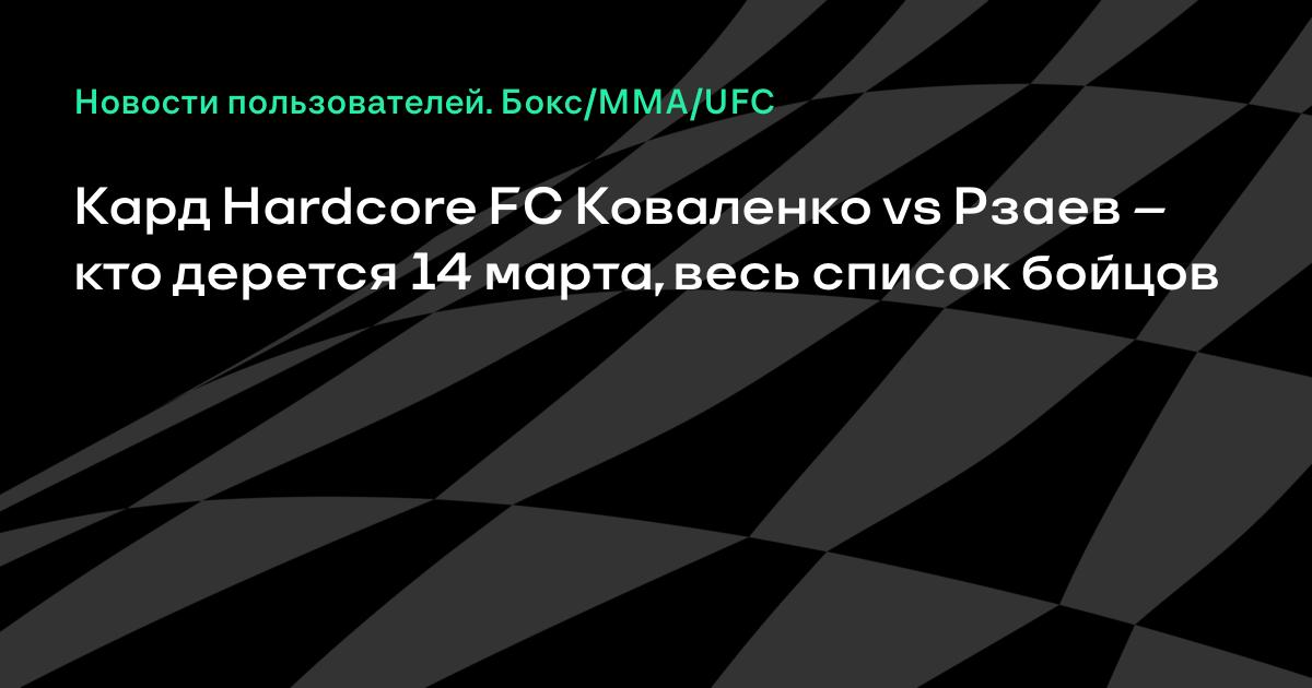 Кард Hardcore FC Коваленко vs Рзаев – кто дерется 14 марта, весь список бойцов