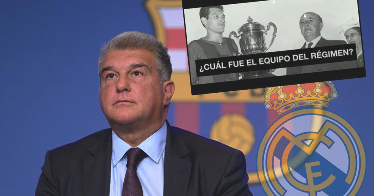 На клубном канале «сливочных» Real Madrid TV вышел ролик с названием «Кто на самом деле был клубом правящего режима?» В нем перечисляются факты, относящиеся ко времени правления Франсиско Франко: «Он трижды спасал «Барсу» от банкротства, был их сосьо, его министр открыл «Камп Ноу». При нем они 8 раз брали Ла Лигу».