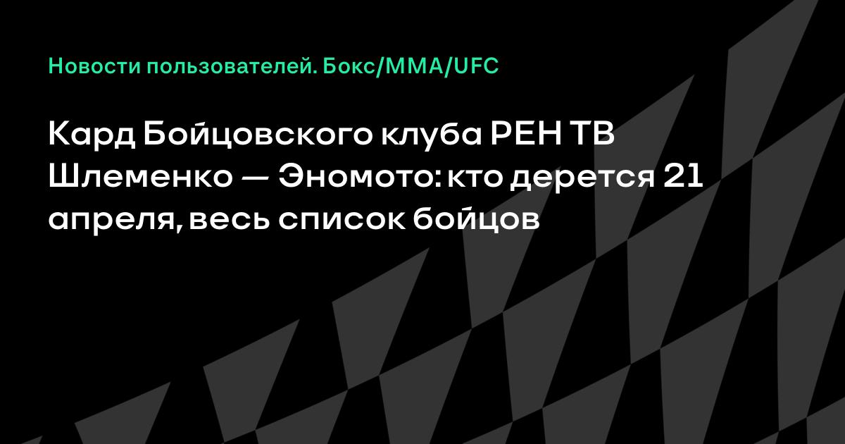 Кард Бойцовского клуба РЕН ТВ Шлеменко — Эномото: кто дерется 21 апреля, весь список бойцов