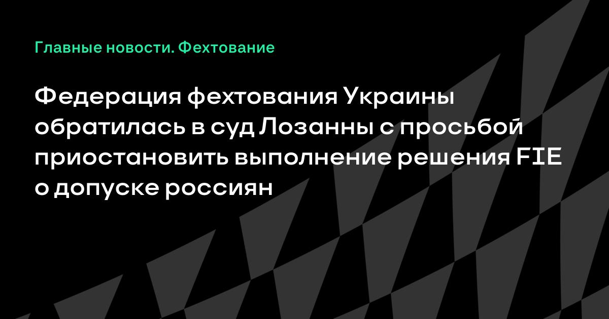 «5 апреля 2023 года Федерация фехтования Украины подала в Окружной суд Лозанны заявление о принятии мер предосторожности в виде приостановления выполнения решения внеочередного конгресса FIE от 10 марта 2023 года о допуске российских и белорусских атлетов и официальных лиц федераций фехтования этих стран к индивидуальным и командным соревнованиям.