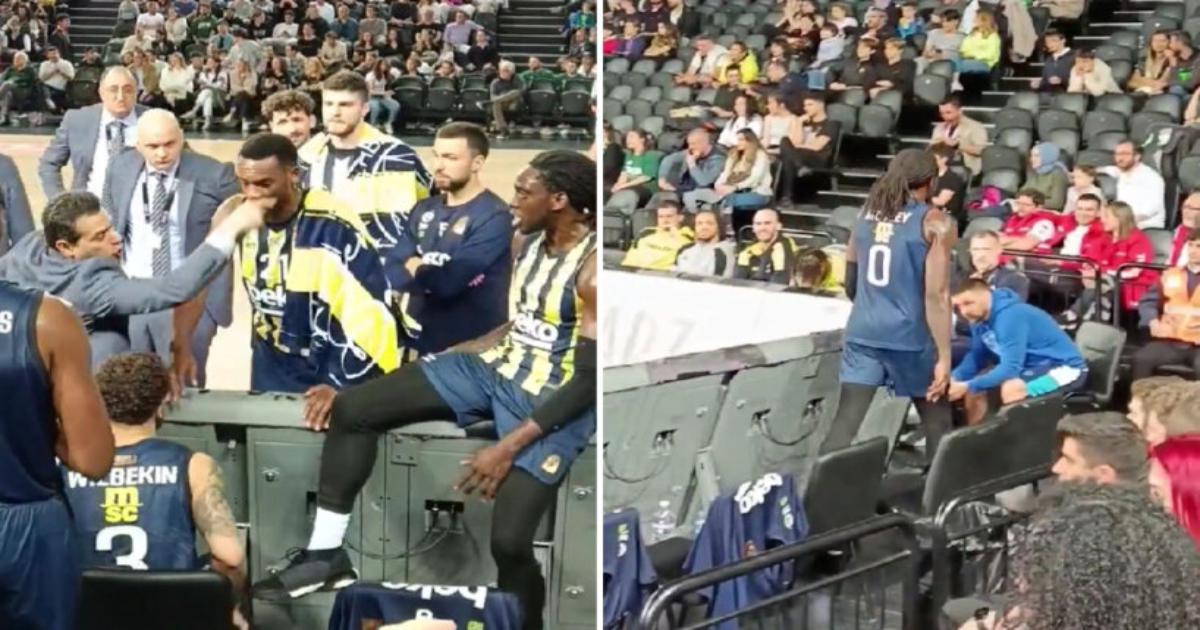 Инцидент случился в перерыве после первой четверти при счете 22:18 в пользу «Фенербахче». Сначала тренер о чем-то спорил с игроком, а затем отправил его в раздевалку.