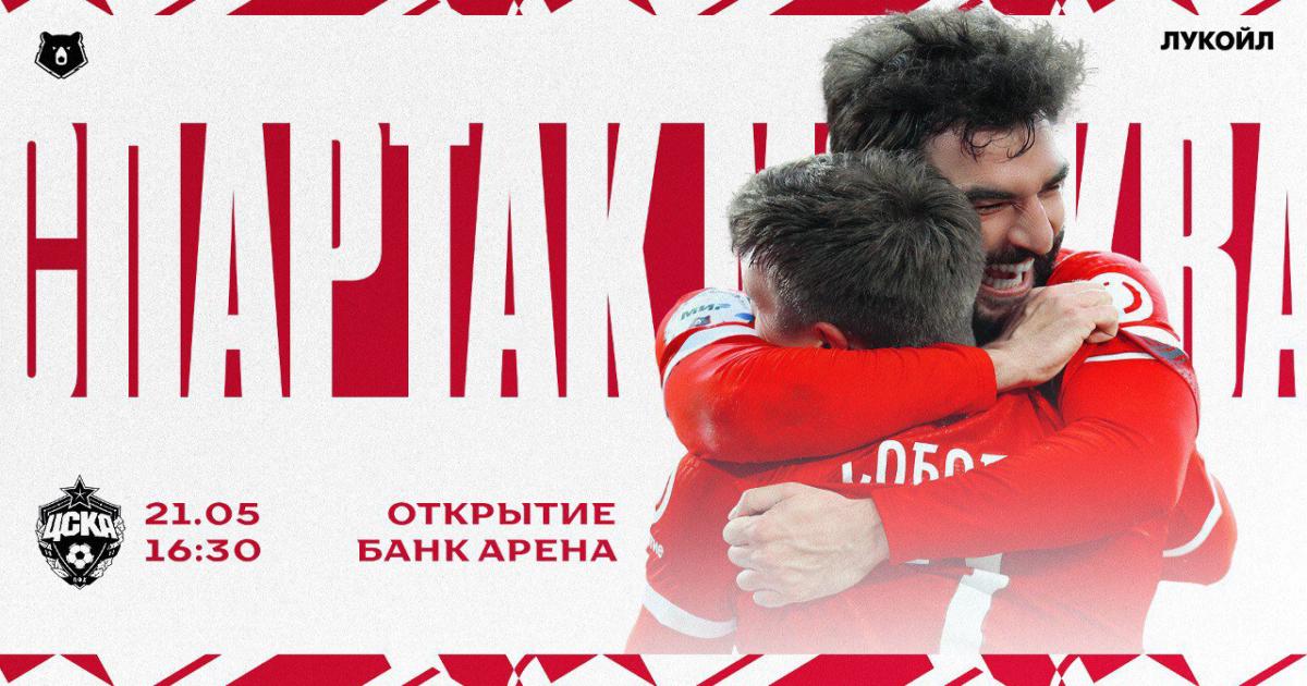 В 28 туре РПЛ «Спартак» встретится с ЦСКА. Матч состоится 21мая, в 16:30 на «Открытие Банк Арене».