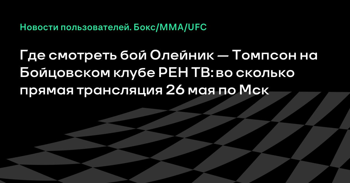 Где смотреть бой Олейник — Томпсон на Бойцовском клубе РЕН ТВ: во сколько прямая трансляция 26 мая по Мск