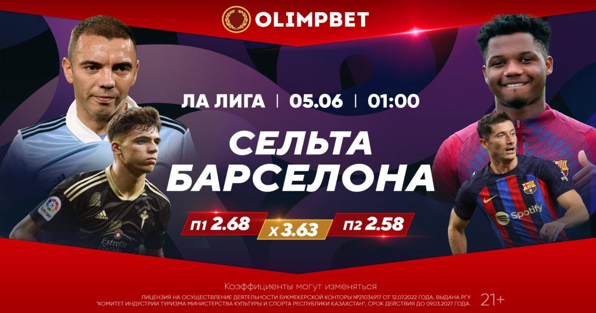 Учитывая большую вероятность того, что каталонцы действительно могут выставить в Виго полурезервный состав, аналитики лучшего букмекера Казахстана Olimpbet не делают «Барселону» явным фаворитом последнего матча сезона. Поставить на исходы поединка можно по следующим коэффициентам: П1 – 2.68, Х – 3.63, П2 – 2.58.