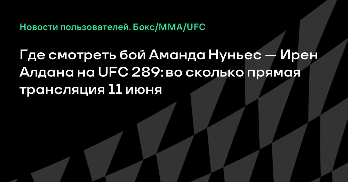 В воскресенье 11 июня 2023 года пройдет турнир по смешанным единоборствам UFC 289, который будет проведен на арене «Rogers Arena» в Ванкувере, Канада. В титульном бою состоится поединок в легчайшем весе между Амандой Нуньес и Ирен Алданой.