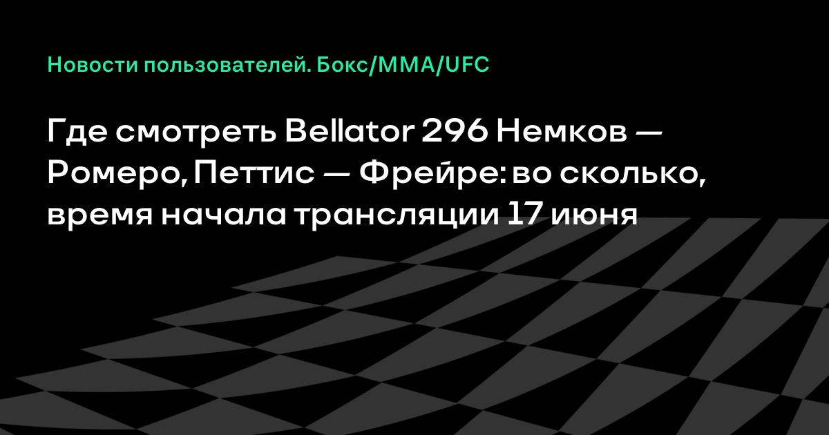 Где смотреть Bellator 296 Немков — Ромеро, Петтис — Фрейре: во сколько, время начала трансляции 17 июня