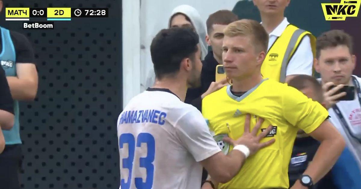Курбанов на эмоциях толкнул рефери, за что получил красную карточку.