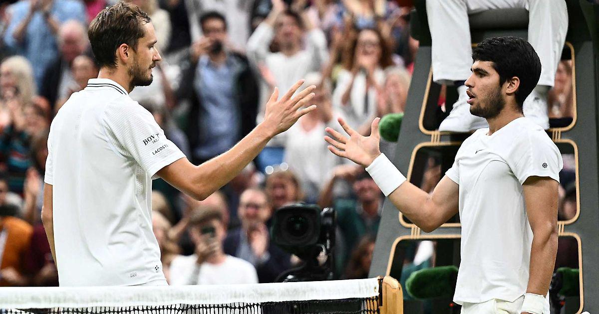 1. Карлос Алькарас победил Даниила Медведева в полуфинале «Уимблдона». Испанец второй раз сыграет в финале «Большого шлема». Его соперником станет действующий чемпион Новак Джокович, прошедший Янника Синнера. Для серба это пятый подряд финал «Уимблдона», четыре предыдущих он выиграл.
