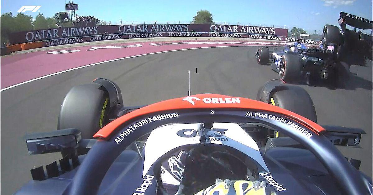 В первом повороте французы поучаствовали в аварии. Пилот «Альфа Ромео» Чжоу Гуаньюй задел новичка «Альфа Таури» Даниэля Риккардо, который, в свою очередь, вызвал столкновение между двумя напарниками по «Альпин».