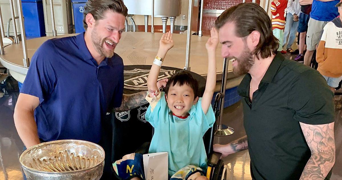 Логан Томпсон и Эдин Хилл привезли Кубок Стэнли в детскую больницу Альберты.