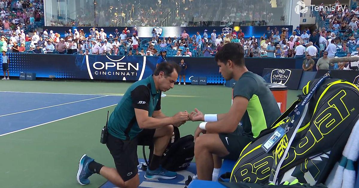Первая ракетка мира Карлос Алькарас получил повреждение пальца в финале в Цинциннати против Новака Джоковича.