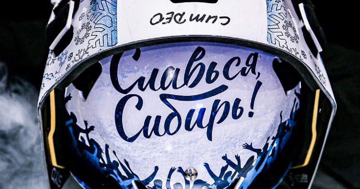 Вратарь Костин представил новый шлем с фразой «Славься, «Сибирь», снеговиком и снежинками