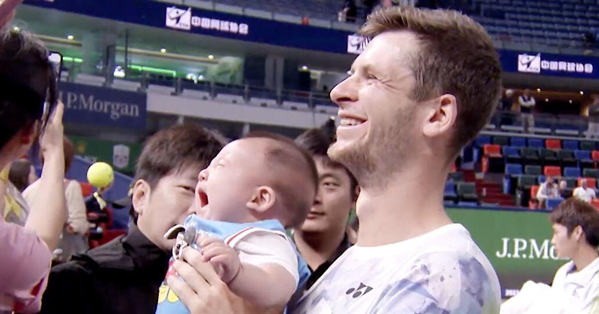 Болельщик на трибуне попросил Хуркача сфотографироваться с ребенком. Мальчик был спокоен, пока Хуркач раздавал автографы, и начал плакать, как только теннисист взял его на руки.