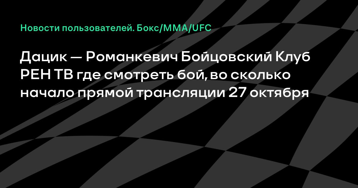 Дацик — Романкевич Бойцовский Клуб РЕН ТВ где смотреть бой, во сколько начало прямой трансляции 27 октября