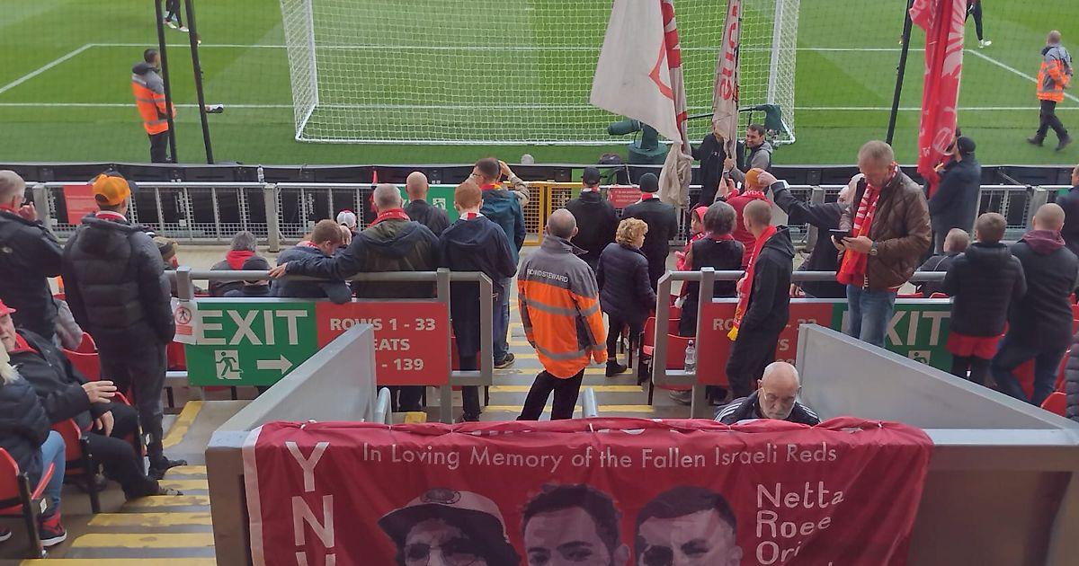 «Ливерпуль» извинился перед фанатом, чей баннер о погибших болельщиках из Израиля не дали показать: «Наши действия основаны на соображениях безопасности»