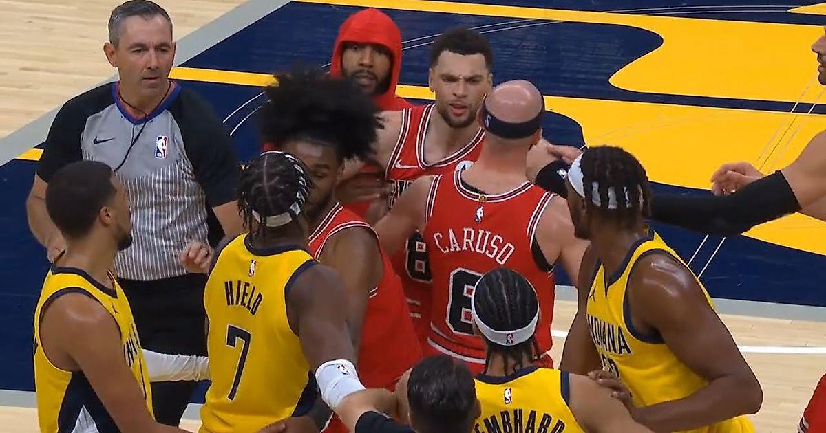 Защитник «Чикаго» Зак Лавин устроил стычку с игроками «Индианы» во время матча между командами в понедельник.