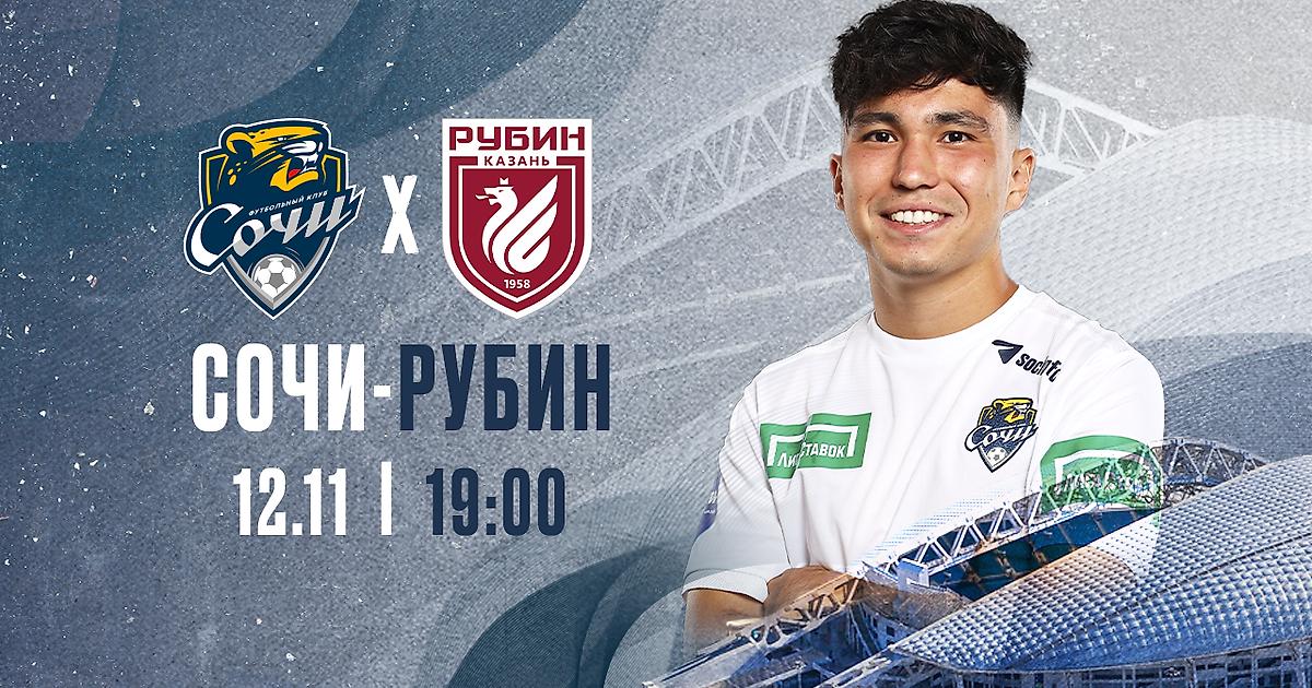 В 15 туре РПЛ «Сочи» принимает «Рубин». Матч пройдет в воскресенье, 12 ноября, в 19:00 на стадионе «Фишт».