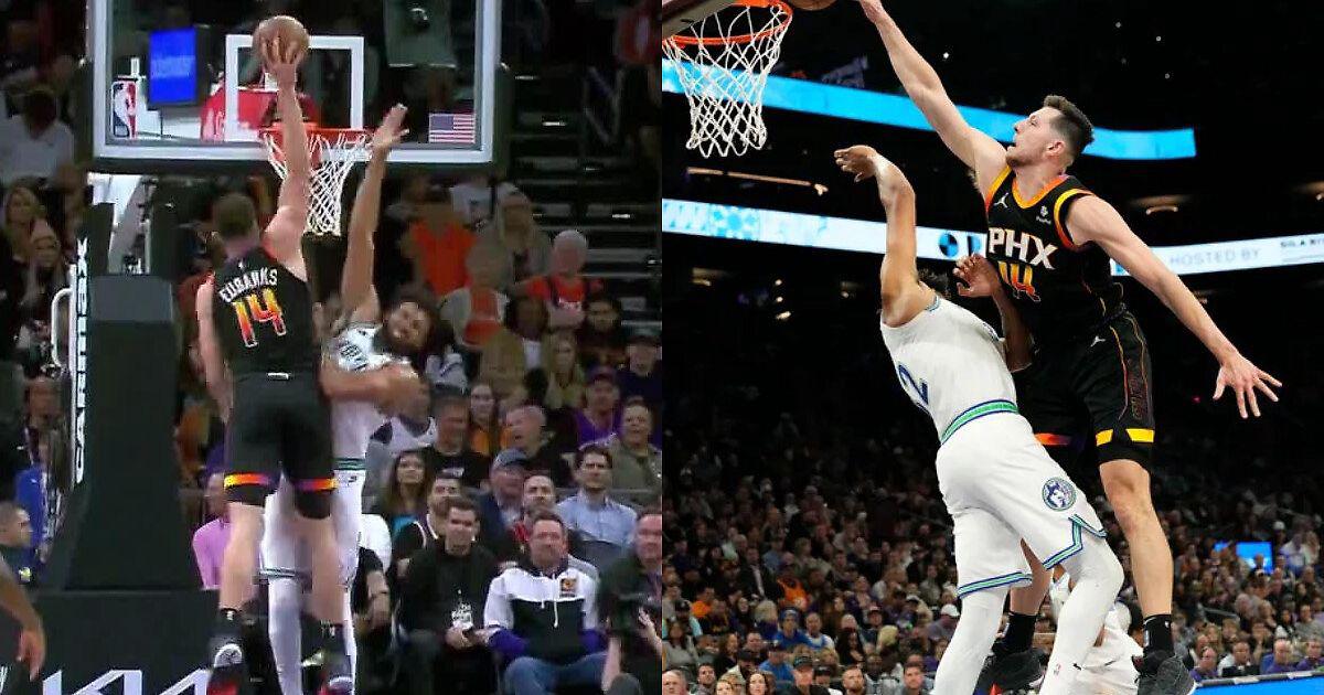 Центровой «Санз» Дрю Юбэнкс стал автором эффектного постера через бигмэна «Тимбервулвз» Карла-Энтони Таунса. Юбэнкс получил передачу от Кевина Дюрэнта после пик-н-ролла и поставил сверху через сместившегося на подстраховку Таунса.