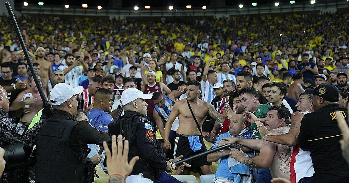 Матч квалификации ЧМ-2026 начался с задержкой на 27 минут из-за беспорядков на «Маракане». Во время исполнения гимнов на одной из трибун, где присутствовали как бразильские, так и аргентинские болельщики, началась стычка. Полиция отреагировала жестко и применила дубинки против болельщиков.