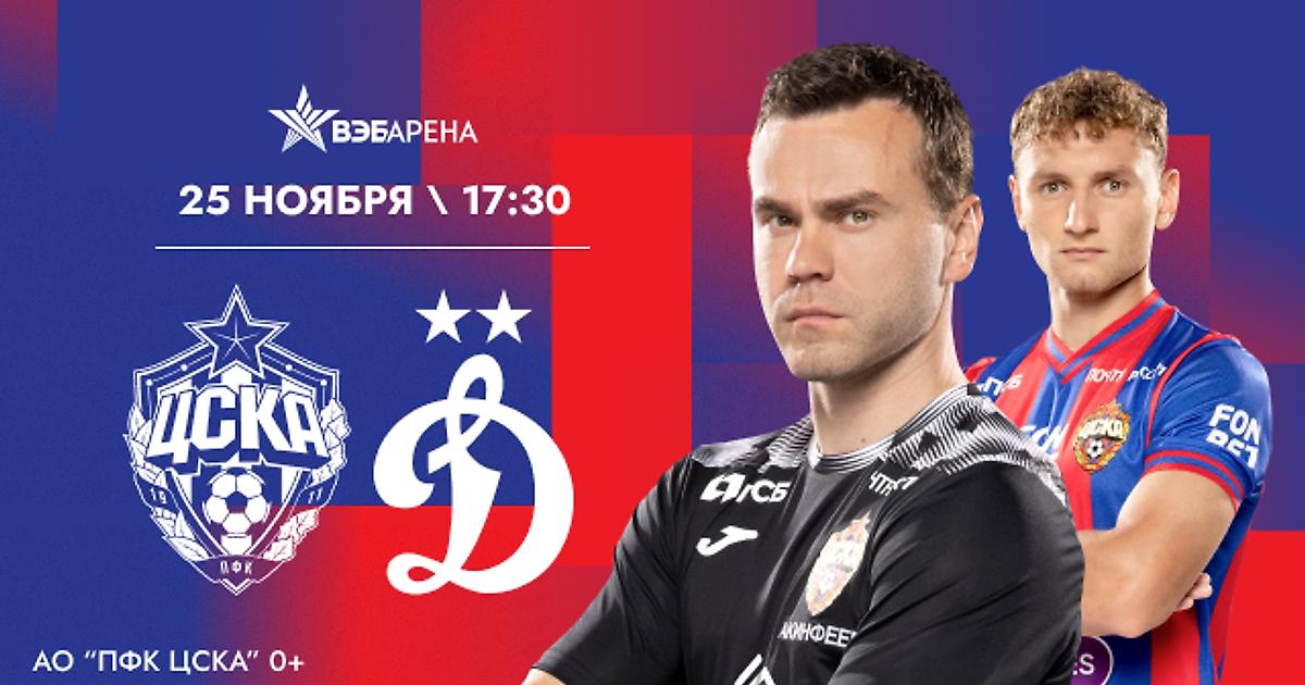 В 16 туре РПЛ ЦСКА принимает «Динамо». Матч пройдет в субботу 25 ноября, в 17:30 на стадионе «ВЭБ Арена»