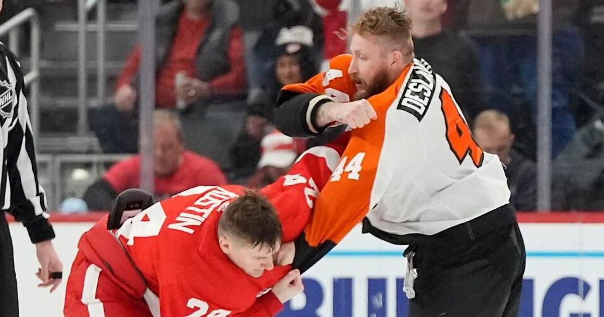Костин подрался с Делорье в матче «Детройт» – «Филадельфия». Игроки скинули шлемы перед боем