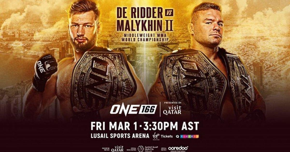 1 марта в Лусаиле (Катар) пройдет турнир ONE Championship 166. Событие возглавит бой за титул в среднем весе между Анатолием Малыхиным и Реньером Де Риддером